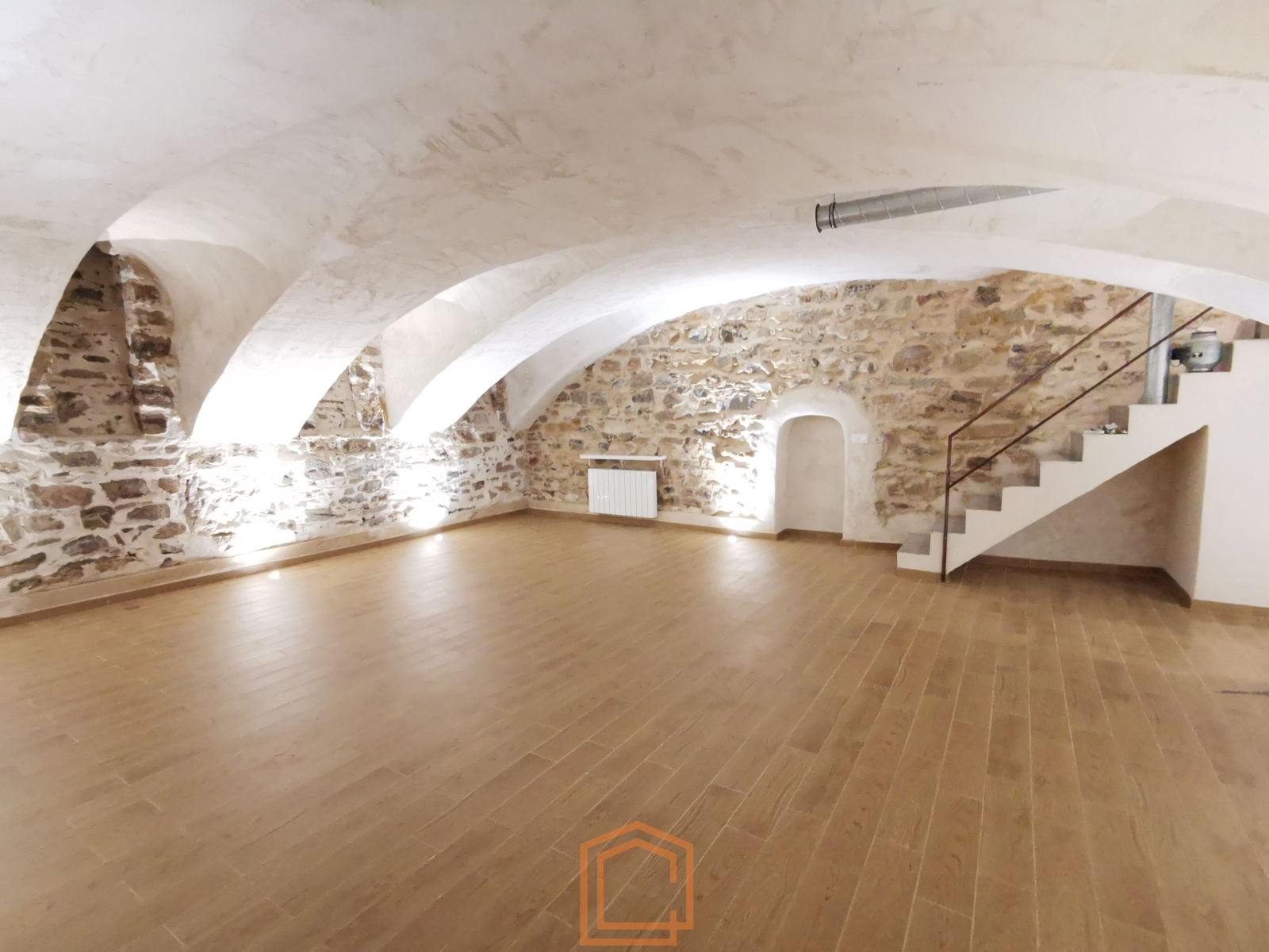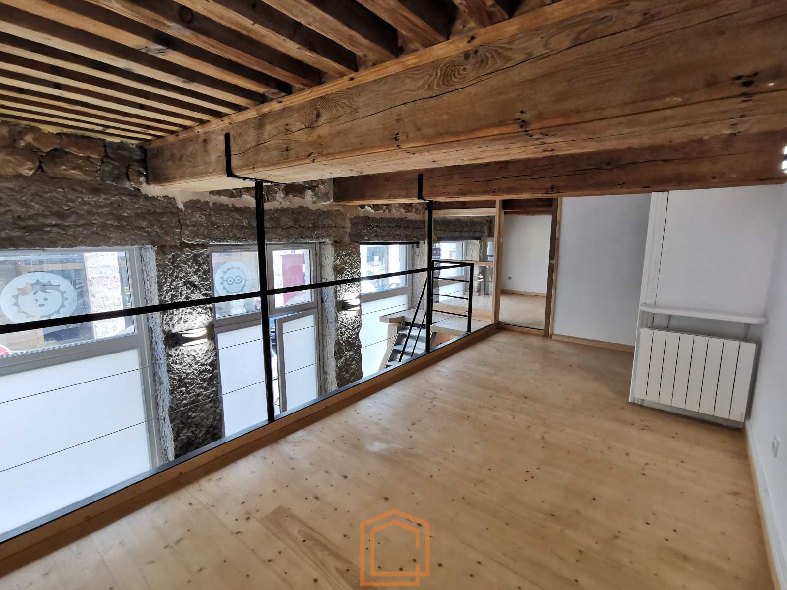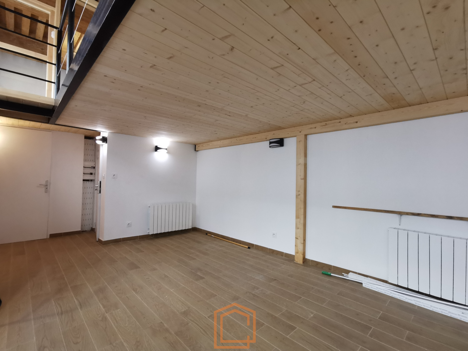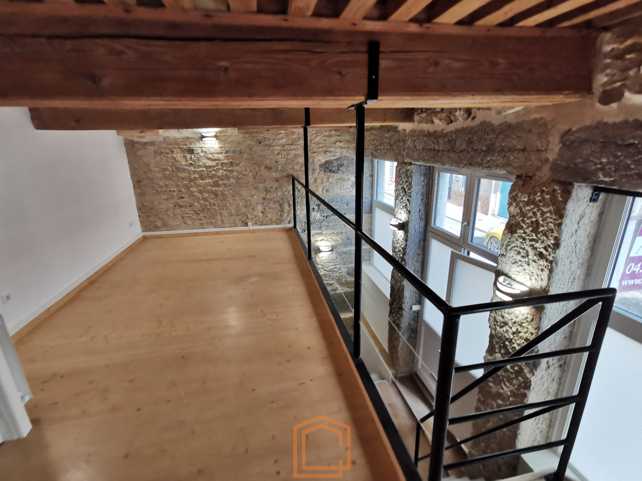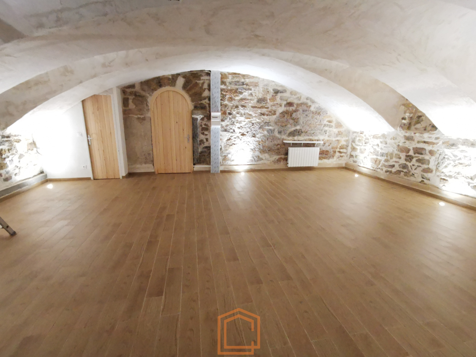 a l'étage un bureau indépendnat avec rangement et mezzanine ouverte, et en sous sol un très belle pièce voutée de 60m² avec une salle d'eau.