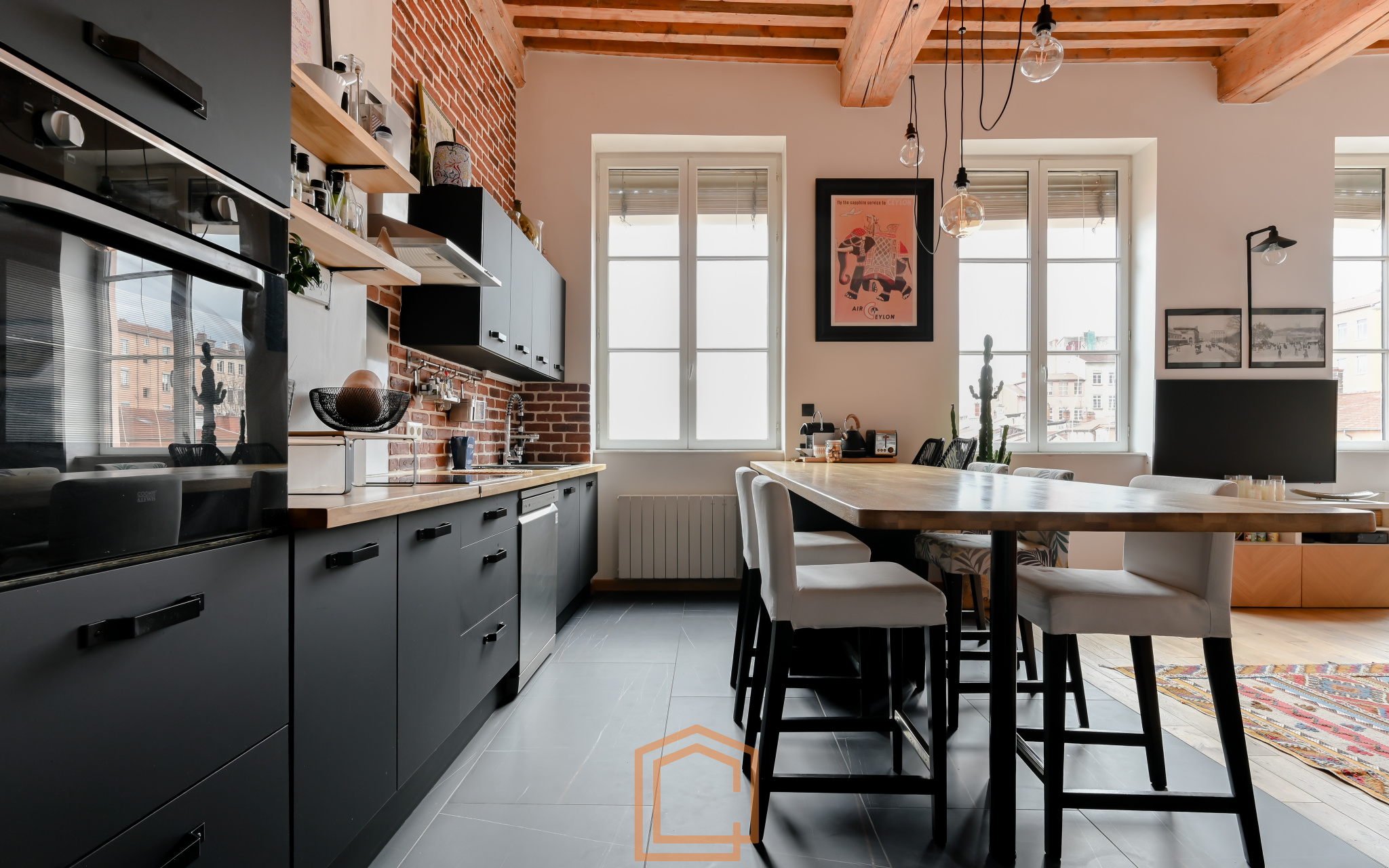 Dès l’entrée, vous serez séduit par une magnifique pièce de vie de plus de 40 m², baignée de lumière grâce à ses trois grandes fenêtres. L’espace salon-séjour avec cuisine ouverte propose des volumes sans aucun vis-à-vis et une vue époustouflante sur Lyon et le Rhône.