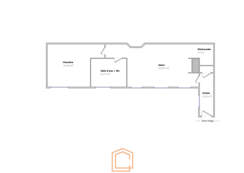 L'appartement se compose : d'une spacieuse entrée avec placard mural, d'une belle pièce lmineuse grâce à ses trois grandes fenêtres, d'un coin cuisine équipé, d'une chambre, d'une salle d'eau avec wc. se compose d'une entrée avec placard mural, d'une belle pièce de vie très lumineuse grace à ses 3 grandes fenêtres, d'une chambre, d'une salle deau avec wc ainsi que d'un espace cuisine aménagé.